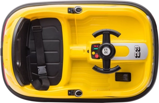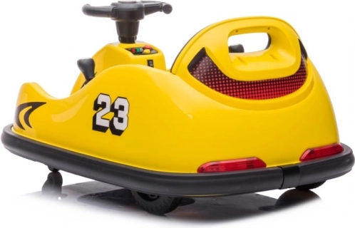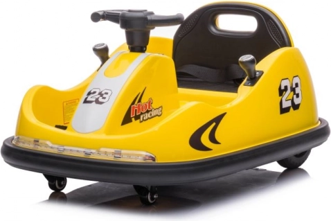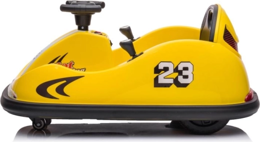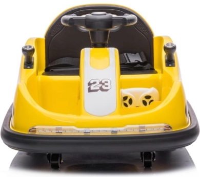 Das gelbe elektrische Bumper-Car-Kinderauto ist ideal für die ersten Fahrerlebnisse. Die kompakte Bauweise, der niedrige Schwerpunkt und der umlaufende Stoßfänger sorgen für Stabilität und Schutz beim Fangen spielen wie auch beim Drehen auf der Stelle. Der Sitz mit Sicherheitsgurt und die übersichtliche Bedienung ermöglichen Kindern komfortables Fahren und geben Eltern ein gutes Gefühl.