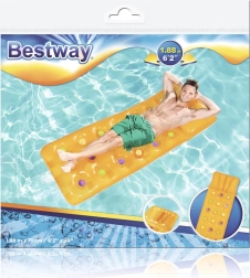 Die aufblasbare BESTWAY-Matratze ist der ideale Begleiter für den Urlaub oder das Wochenende am Pool. Leicht, platzsparend und schnell einsatzbereit – nach dem Luftablassen benötigt sie nur minimalen Platz im Gepäck. Die zweikammerige Lösung sorgt für eine gleichmäßige Befüllung und mehr Stabilität auf der Wasseroberfläche, während das integrierte Kissen für maximalen Komfort sorgt.