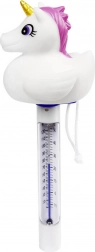 Genießen Sie Baden bei idealer Temperatur mit dem schwimmenden Poolthermometer BESTWAY in Einhornform. Die übersichtliche Skala zeigt Werte in Celsius und Fahrenheit, und die ABS-Konstruktion gewährleistet Beständigkeit gegen Wasser und Sonne. Dank der Schlaufe mit Schnur lässt sich das Thermometer leicht am Poolrand befestigen.