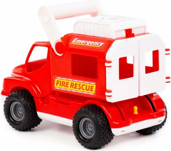 Entdecken Sie das robuste ConsTruck-Feuerwehrauto, das Fantasie, Motorik und logisches Denken fördert. Dank der Gummiräder fährt es auf verschiedenen Untergründen besonders geschmeidig, und die ausziehbare Leiter sowie realistische Details sorgen bei jedem Einsatz für Spannung. Öffnende Hecktüren und das obere Fach bieten Platz für Figuren oder kleine Schätze.
