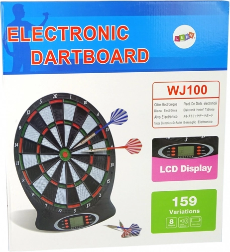 Der Lieferumfang enthält eine elektronische Dartscheibe, 6 Pfeile und eine Anleitung in Englisch. Das Produkt wird mit drei AA-Batterien betrieben (nicht im Lieferumfang enthalten) und in einer bunten Schachtel geliefert, was es zu einem idealen Geschenk macht. Das Produkt erfüllt die CE- und EN71-Normen.