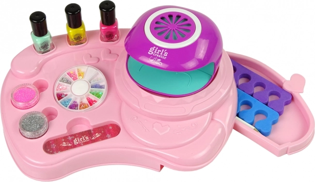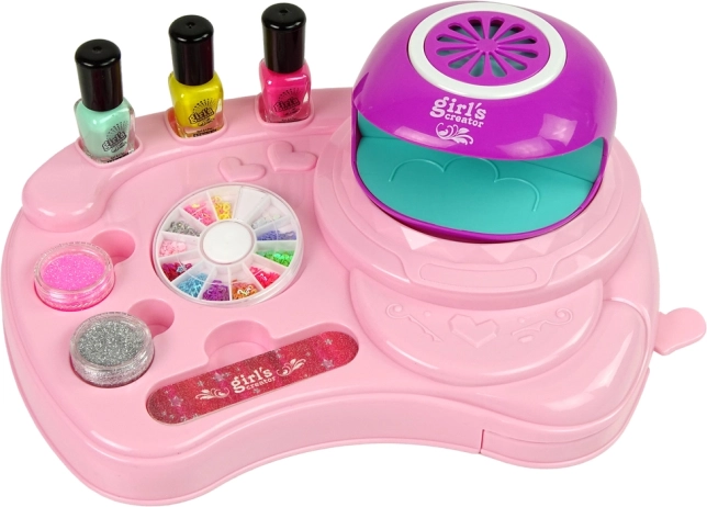Simuliert ein echtes Nagelstudio mit einer Lampe zum Trocknen der Nägel. Erlaubt es Kindern, professionelle Nagelpflege zu Hause zu genießen.