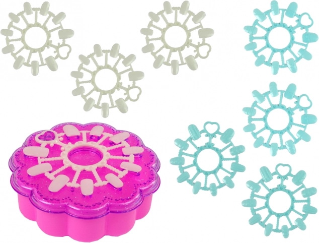 Enthält bunte Aufkleber, glitzernde Separatoren und Schablonen, um kreative Muster auf den Nägeln zu gestalten.
