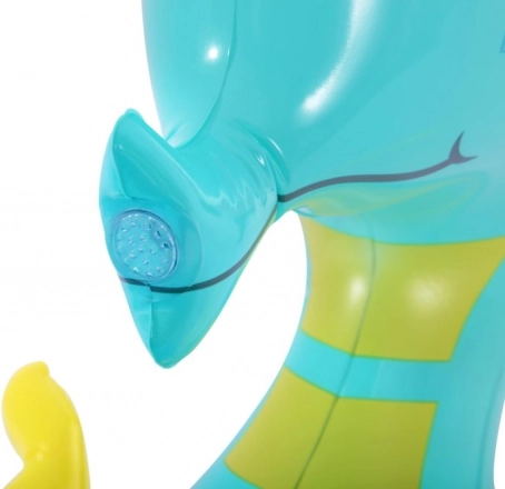 Der integrierte Sprüher in Form eines Seepferdchens erzeugt einen feinen Wassernebel – einfach den Gartenschlauch anschließen und der Wasserspaß kann beginnen.