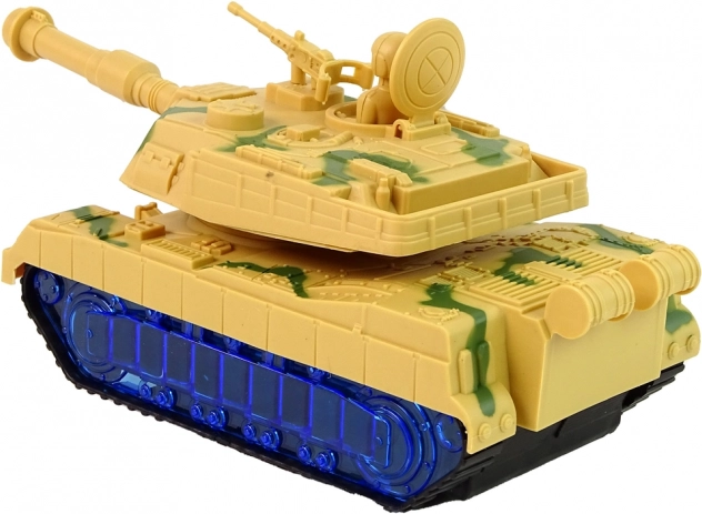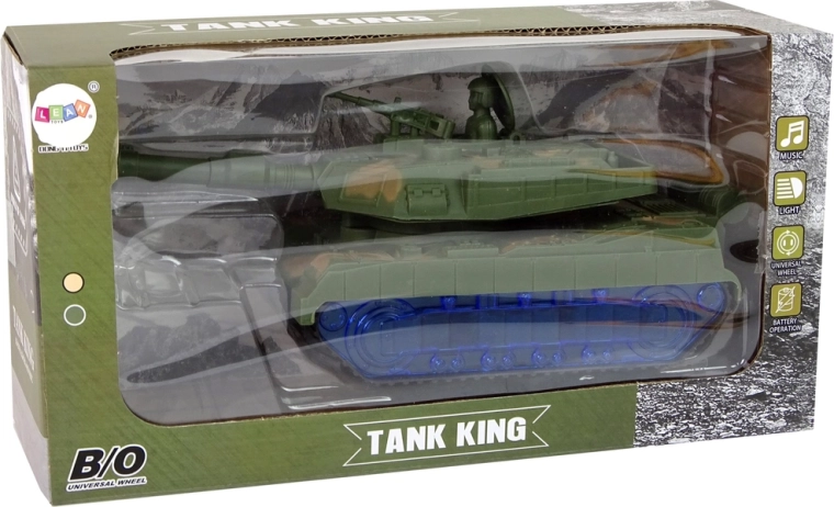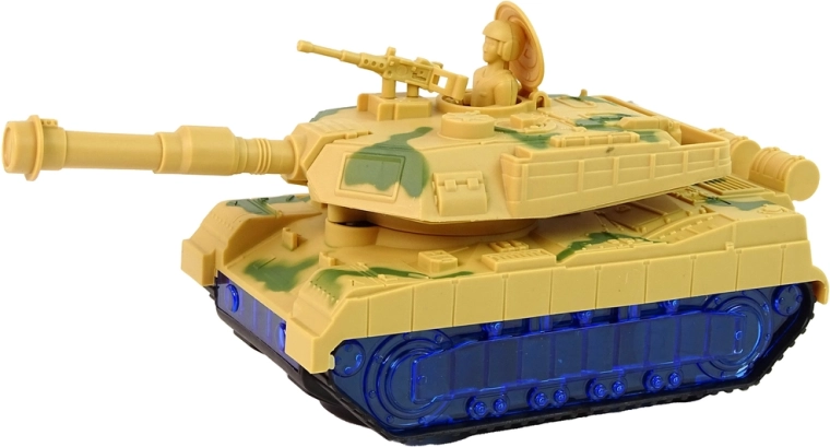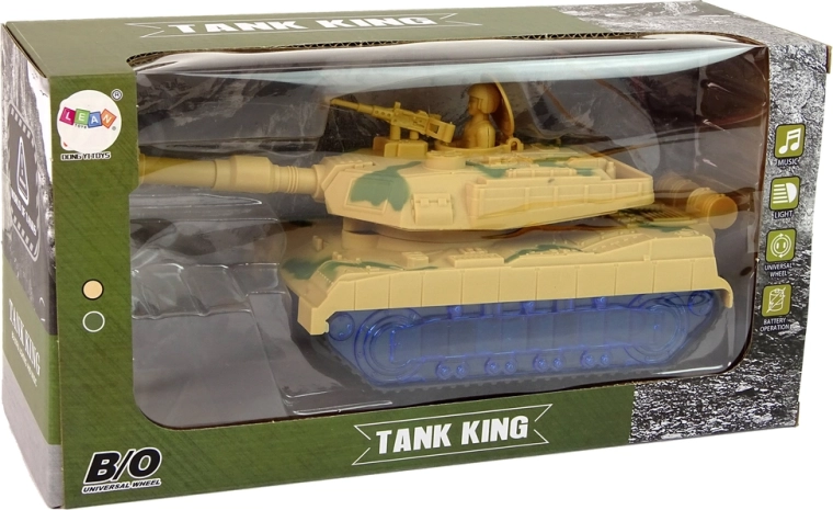 Der Panzer hat eine Tarnlackierung und Kettenräder, die die Fahrt eines echten Panzers nachahmen. Eine Überraschung ist, dass die Räder mithilfe von blauen LED-Dioden leuchten. Nach dem Einschalten dreht sich die Kanone von Seite zu Seite und im Hintergrund sind Motorgeräusche zu hören. Jedes Detail entspricht einem echten Fahrzeug. Der Panzer ist einer der Helfer für kleine Schlachten.