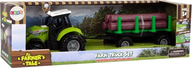 Dieser grüne Traktor mit abnehmbarem Anhänger und Kunststoffstämmen bringt Kindern ein authentisches Bauernhoferlebnis. Per Knopfdruck werden Motor- und Fahrgeräusche aktiviert, der vordere Scheinwerfer beleuchtet den Weg und das realistische Design fördert Fantasie und kreatives Spiel.