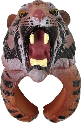 Ein lustiger und sicherer Ring mit einem realistischen Kopf eines Bengalischen Tigers fördert die Fantasie und das spielerische Lernen. Er ist leicht, bequem und die bemalte Oberfläche ist ungiftig und sicher für Kinder. Ein großartiges Accessoire für Kostüme und pädagogische Spiele über Tiere.