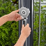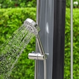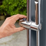 Der praktische verstellbare Duschkopf ermöglicht eine feste Befestigung sowie die Nutzung in der Hand und bietet mehrere Strahlarten. Die Einhebelbedienung sorgt für eine komfortable Regulierung von Durchfluss und Temperatur. Die widerstandsfähige Konstruktion ist für den Außenbereich konzipiert und leicht zu pflegen.