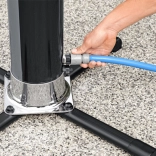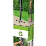 Der gekreuzte Metallstandfuß sorgt für festen Halt auch auf unebenem Untergrund, und der schnelle Anschluss an den Gartenschlauch ist in wenigen Augenblicken erledigt.