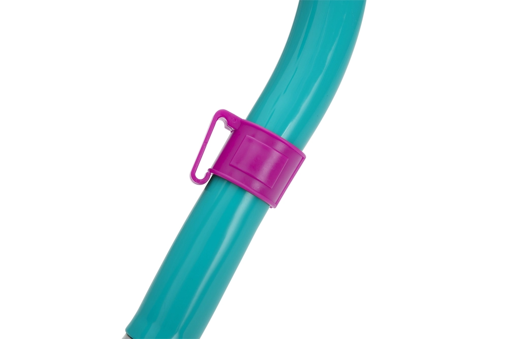 Der Schnorchel ist mit einem weichen Silikonmundstück für bequemes Atmen und einer oberen Barriere gegen Wassereintritt ausgestattet. Der praktische Clip zur Befestigung an der Maske hält alles an Ort und Stelle, damit die Bewegung im Wasser so natürlich wie möglich bleibt.