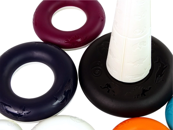 Die stapelbare Pyramide ist mit lebendigen Farben und Tiermotiven ausgestattet, die das Farberkennen unterstützen und die sensorischen Wahrnehmungen des Kindes verbessern.