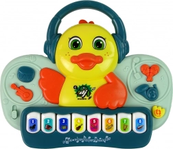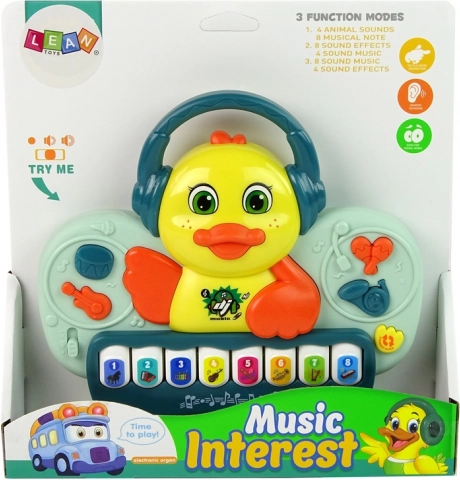 Das interaktive Piano Kačenka ist das perfekte Instrument für die ersten Begegnungen von Kindern mit Musik. Beim Spielen verbessern die Kinder ihre manuellen und motorischen Fähigkeiten und entdecken die Welt um sich herum über die Sinne - Beobachtung, Hören und Tasten. Das Spielzeug ist sorgfältig in lebendigen Farben und mit dem Entenmotiv hergestellt, das zum Entdecken und Kennenlernen einlädt. Leuchtende Elemente und Klangeffekte ziehen die Aufmerksamkeit der Kinder an und helfen ihnen, die umgebende Welt zu erkennen.