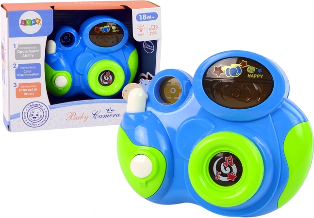 Diese unterhaltsame und sichere Kinderkamera hilft den Kleinsten, die Welt durch das Nachahmen der Erwachsenen zu entdecken. Beim Drücken der Tasten werden 3 Melodien, bunte Lichter wie ein Blitz und ein realistisches 'Klick'-Geräusch ausgelöst. Das drehbare Objektiv rasselt beim Drehen angenehm, was die Neugier weckt und die Feinmotorik fördert.