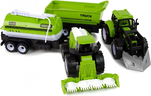 Dieses umfassende Set an Bauernhofmaschinen bietet Kindern ein authentisches Erlebnis der Feldarbeit. Traktor mit Frontlader, Mähdrescher und Anhänger (Wasserzisterne und Lastanhänger) ermöglichen das einfache Simulieren von Bewässerung, Ernte und Materialtransport. Dank der realistischen Ausführung und des robusten Kunststoffs eignet es sich für Kinderzimmer, Garten und Sandkasten.