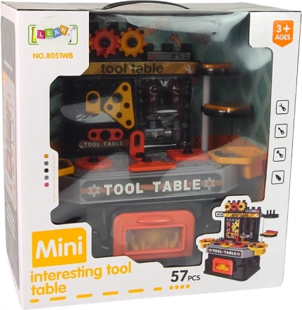 Das Set ist aus robustem Kunststoff gefertigt, in Farben, die in jede Heimwerkstatt passen. Inbus- und Schraubelemente, Bohrungen in der Arbeitsplatte zum Schrauben und ein funktionaler Schraubstock machen das Spiel zu einer sinnvollen Tätigkeit, die Geschicklichkeit, Geduld und Genauigkeit fördert. Ein toller Tipp als Geschenk für kleine Heimwerker.
