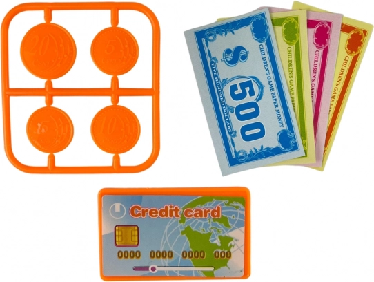 Bunte Banknoten, Münzen und eine Zahlungskarte fördern die finanzielle Grundbildung und erklären spielerisch den Wert des Geldes.
