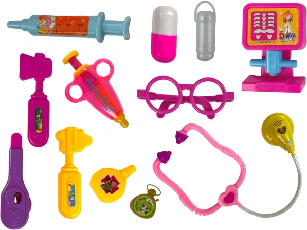 Das Stethoskop mit Herzchen lässt beim Auflegen ein rotes Lämpchen aufleuchten, das eine „Untersuchung“ signalisiert. Anschließend können die kleinen Ärztinnen und Ärzte eine „Spritze“ geben, „Medikamente“ verschreiben und sich um die schnelle Genesung des heimischen Patienten kümmern. Alle Teile bestehen aus hochwertigem Kunststoff, haben keine scharfen Kanten und lassen sich leicht wieder im Koffer verstauen.