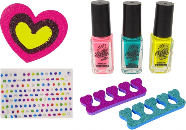 12 Schablonen, Feile, Glitzer, Zehenspreizer, 3 Lacke
