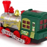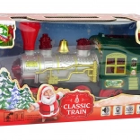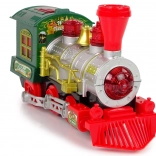 Die Lokomotive ist mit schönen, leuchtenden Farben und festlichen Details entworfen, die an die Weihnachtsatmosphäre erinnern.