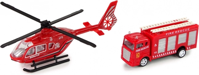 Im Set enthalten sind ein Feuerwehrwagen, ein Hubschrauber und 6 Karten mit verschiedenen Fahrzeugen. Riesenspaß für Kinder ab drei Jahren, das Spielzeug entspricht der Norm EN71.