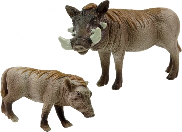Dieses Set enthält ein erwachsenes Warzenschwein und sein Jungtier in realistischer Gestaltung. Jede Figur ist sorgfältig aus hochwertigem Kunststoff gegossen und von Hand bemalt, sodass das Aussehen der echten Tiere naturgetreu wiedergegeben wird. Eine großartige Wahl für Kinderspiele, Lernen und zum Erweitern der Sammlung.