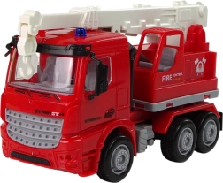 Rotes Feuerwehrauto mit ausziehbarer weißer Leiter und beweglichen Rädern. Der Seitentext 'FIRE CONTROL' fügt ein realistisches Element für Rettungseinsätze hinzu.
