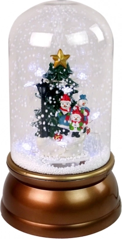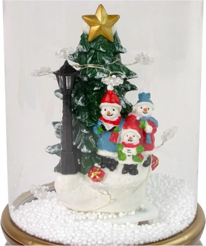 Die stilvolle gläserne Weihnachtskugel mit einer Szene einer fröhlichen Schneemannfamilie am Tannenbaum verleiht Ihrem Interieur eine einzigartige festliche Note. Eine interne Pumpe zirkuliert den Schnee vom Sockel und zerstäubt ihn von oben, sodass ein realistischer Effekt von fallendem Schnee entsteht. Die Dekoration wird von warm-weißem Licht erhellt und sorgt für eine wohlig-winterliche Atmosphäre.