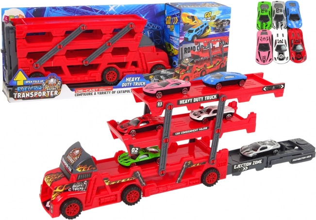 Der Spieler kann mit diesem LKW nicht nur kleine Autos auf drei beweglichen Ebenen transportieren, sondern auch eine eingebaute Abschussvorrichtung für dynamisches Spiel nutzen. Der zusätzliche Raum unter der Kabine ermöglicht es, die Autos mit hoher Geschwindigkeit abzuschießen, was dem kleinen Fahrer viel Spaß garantiert. Daher ist es ideal für das individuelle Spiel sowie für die gemeinsame Interaktion mit Eltern oder Gleichaltrigen.