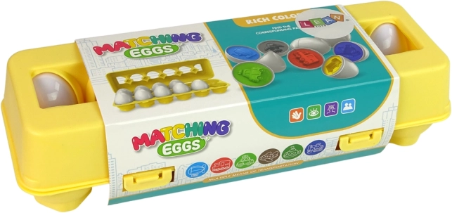 Jedes Ei verbirgt eine einzigartige Steckform, inspiriert von Verkehrsmitteln, und eine kräftige Farbe. Die Aufgabe besteht darin, zwei Hälften zu finden, die in Form und Farbe zusammenpassen. Das Spiel lehrt auf natürliche Weise das Erkennen von Farben, Formen und Fahrzeugnamen und fördert Geduld, Konzentration sowie die Hand-Auge-Koordination.