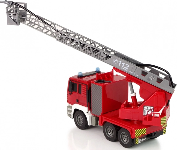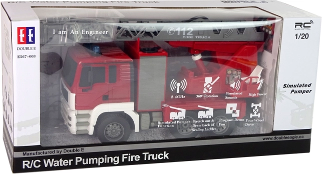 .Das rote Feuerwehrauto lässt Ihr Kind sich wie ein echter Feuerwehrmann fühlen. Auf dem Dach befindet sich eine Plattform mit einer Strahlrohrdüse des Feuerwehrschlauchs, aus der Wasser spritzt! Das ist dank des Tanks möglich, der am Anhänger des Fahrzeugs angebracht ist. Nach dem Anschließen und Befüllen des Tanks mit Wasser ist Ihr kleiner Feuerwehrmann einsatzbereit!