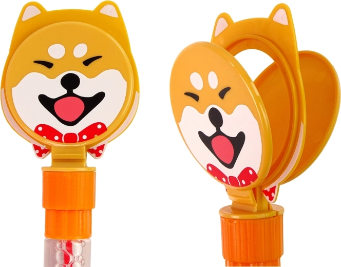 Dieses Spielzeug eignet sich für besondere Anlässe oder für das gemeinsame Spielen im Garten. Der Behälter hat die Form einer länglichen Flasche, an deren Ende sich ein Hündchen befindet. Es hat ebenfalls eine Funktion: Bei Bewegung ertönt ein Klickgeräusch – das Spielzeug bietet nicht nur visuelle, sondern auch akustische Effekte.