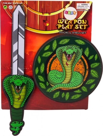 Dieses Ritterset aus hochwertigem EVA-Schaum ist die perfekte Ergänzung zu einem Ritter- oder Königskostüm. Dank des weichen Materials ist das Spiel sicher und angenehm, während das auffällige Motiv einer grünen Schlange auf Schwert und Schild die kindliche Vorstellungskraft und Rollenspiele anregt.