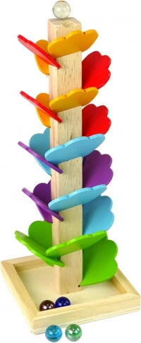 Holzspielzeug ist zeitlos, robust und ideal für die ersten Entdeckungen der Welt. Dieser Kugelbaum ermöglicht Kindern, beim Einsetzen der Blätter Präzision zu üben und gleichzeitig Formen und Farben zu unterscheiden. Einfach die Kugel oben auf den Turm legen und die sanfte Fahrt über die bunten Blätter nach unten beobachten.