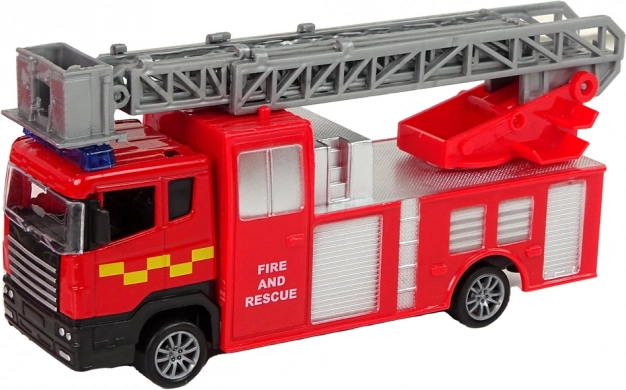 Fahrzeug mit erweiterbarer Leiter mit 32 cm Reichweite, das wie ein authentischer Feuerwehrwagen aussieht. Reibungsantrieb erhöht die Spielfreundlichkeit.