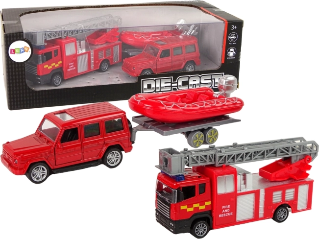 Set Feuerwehrfahrzeuge mit Schlauchboot