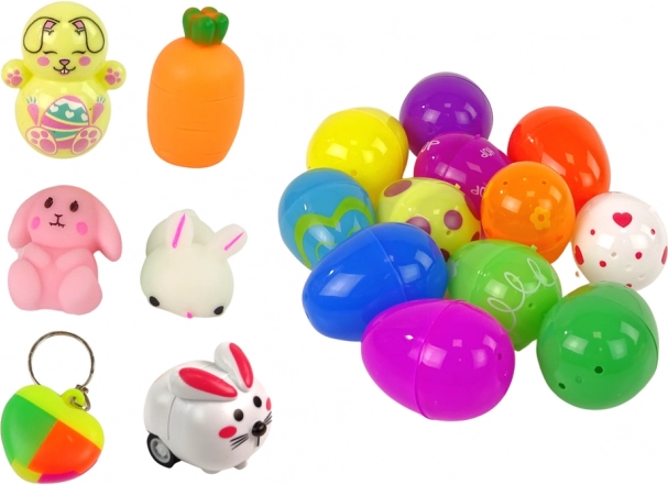 Osterset aus Kunststoff-Eiern mit Fidget-Spielzeugen und Häschen-Handtasche