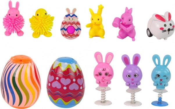 Hasen, Küken und elastische Mini-Spielzeuge begeistern Kinder mit Bewegung, leuchtenden Farben und verschiedenen Texturen für interaktives Spielen.
