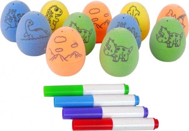 Der Inhalt ist auf Spaß in der Gruppe ausgelegt – dank der vielen Eier kann gemeinsam gestaltet, Ideen geteilt und Zusammenarbeit gefördert werden. Enthalten ist auch eine matte Unterlage mit prähistorischem Motiv, die als Szene für die fertigen Kunstwerke dient.