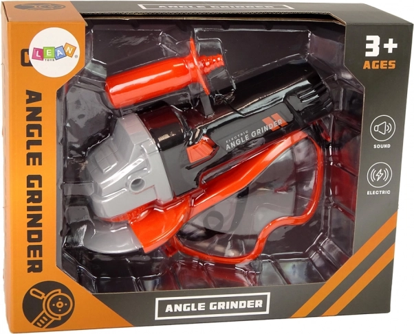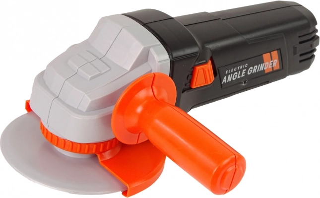 Teil des Sets ist ein batteriebetriebener Schleifer mit authentischem schwarz-orangefarbenem Design. Nach dem Drücken des Knopfes dreht sich die Scheibe, genau wie bei einem echten Schleifer. Zum Spielen stehen Schutzbrillen zur Verfügung, die die Sicherheit gewährleisten.