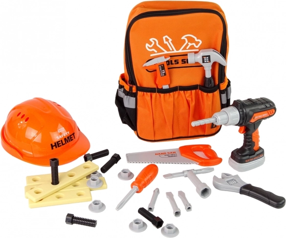 Kinderset Werkzeug mit Rucksack und Helm ist ideal für jeden kleinen Handwerker, der Erwachsene nachahmen möchte. Dieses Set enthält alle erforderlichen Werkzeuge, die ein kleiner Bastler benötigen könnte. Alles ist aus strapazierfähigem Kunststoff gefertigt, der für Kinderhände sicher ist.