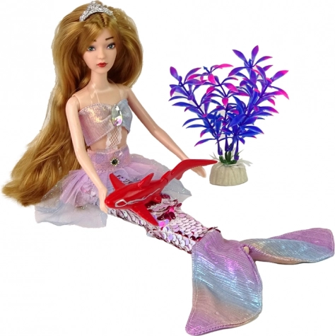 Die Flosse lässt sich leicht abnehmen und die Puppe auf die Füßchen stellen, sodass Kinder zwei Spielarten genießen – als Meerjungfrau und als klassische Puppe. Im Lieferumfang enthalten sind ein dekorativer roter Hai und eine bunte Aquariumspflanze, die die Möglichkeiten für Geschichten und fantasievolles Spiel erweitern.