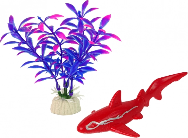 Figur eines roten Hais, Unterwasserpflanze