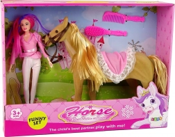 Treten Sie ein in die Welt der Fantasie mit der Reiterpuppe und ihrem schönen braunen Pferd. Die Puppe hat flexible Arme und Beine, sodass sie in verschiedene Positionen gebracht werden kann – stehend oder sitzend auf dem Pferd. Ihr stilvolles Outfit ist typisch für den Reitsport und verleiht dem Spiel zusätzliche Authentizität.