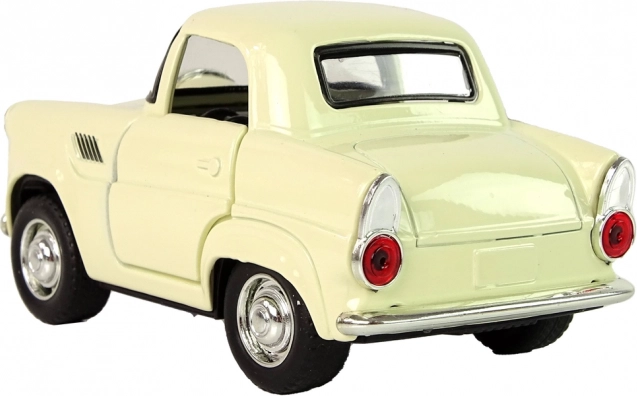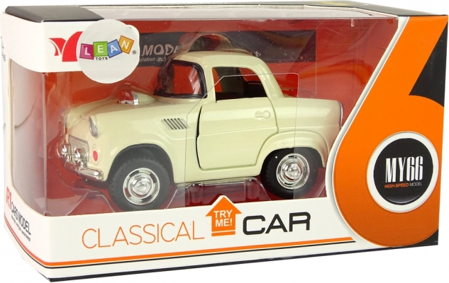 Klassisches Metallauto in beiger Farbe mit schwarzen und silbernen Details für ein realistisches Erscheinungsbild.
