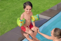 Unterstützen Sie Ihr Kind bei den ersten Wasserspielen mit den Bestway-Schwimmflügeln. Sie bestehen aus widerstandsfähigem, beschädigungsresistentem Material und nehmen im unaufgeblasenen Zustand nur wenig Platz ein – ideal für Pool, Freibad und Meer. Die fröhlich-bunte Grafik motiviert Kinder zu Bewegung und Spiel im Wasser.