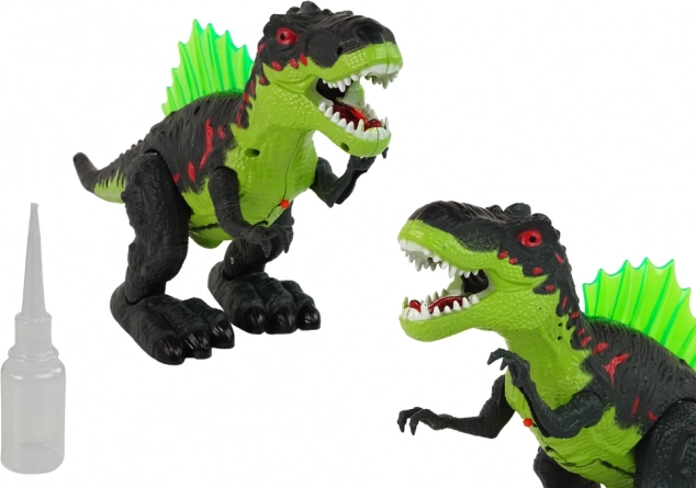 Dieser Dinosaurier ist so konzipiert, dass er Kinder mit seiner Interaktivität begeistert. Das Spielzeug läuft, gibt brüllende Geräusche von sich und aus seinem Maul kommt "Feuer" in Form von sicherem Wasserdampf.