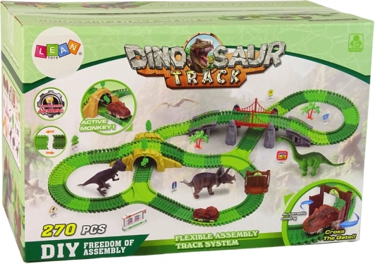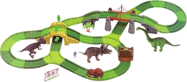 Tauchen Sie ein in die Welt der Dinosaurier mit dieser erstaunlichen Bahn, die aus einfachen Streckenteilen besteht, die sich leicht verbinden lassen, um verschiedene Bahnstrecken für Dinosaurier zu schaffen. Das Set enthält bunte und realistische Figuren dieser erstaunlichen Kreaturen und Zubehör wie Bäume und Pflanzen für eine authentische Szenerie.