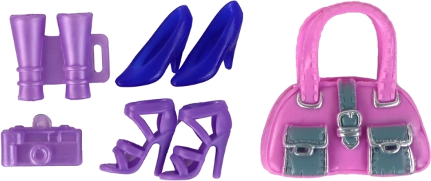 Zum Set gehören auch mehrere modische Stücke, darunter zwei weitere Kleider und eine Hose mit Bluse, damit die Puppe ihren Stil je nach Stimmung ändern kann. Zwei Paar Schuhe, eine Handtasche, eine kleine Kamera und ein Fernglas ergänzen das praktische Zubehör für verschiedene Anlässe und regen die kindliche Fantasie an, Ausflüge und Fotoshootings zu planen.