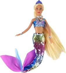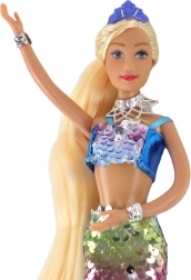 Unsere Puppe ist eine wahre Geschichte über Schönheit und Magie, die sowohl kleine als auch große Märchenliebhaber erfreuen wird. Ihr schuppiger Schwanz ist dank der beidseitigen Struktur und den effektvollen bunten Pailletten außergewöhnlich. Beim Darüberstreichen der Hand über die Pailletten verändert sich die Farbe zu Silber, was an die schönen Schuppen einer echten Meerjungfrau erinnert.