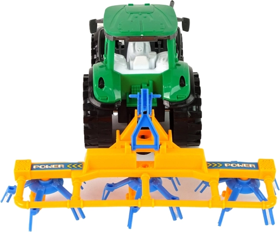 Das hintere Anbaugerät lässt sich leicht anbringen und abnehmen, sodass Kinder verschiedene Szenarien der Feldarbeit nachspielen können.